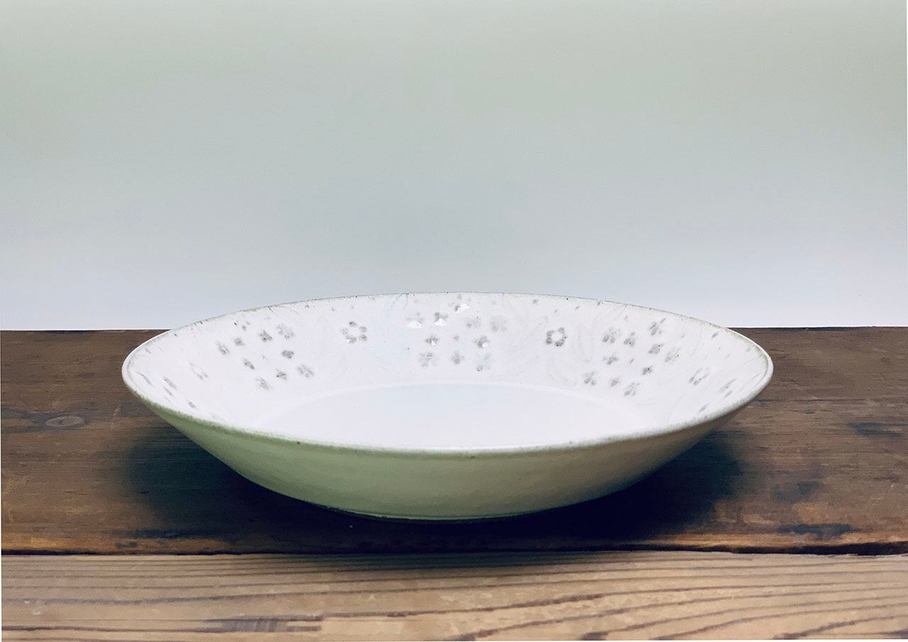 モーニング、ランチ、ディナーとどのシーンでもワンプレートとしてご使用いただける大きさです。レースフラワーをモチーフにロクロ型打ちにて成形しております。
