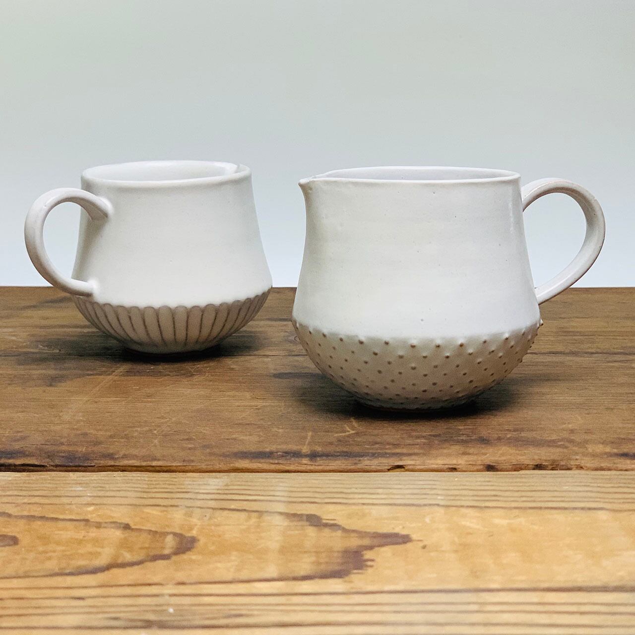 器の面部分の白い面は、手で触ると土の質感が分かる程度に薄く釉薬を掛けております。